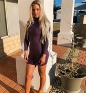 Emma Hartley sexy in a tight purple dress