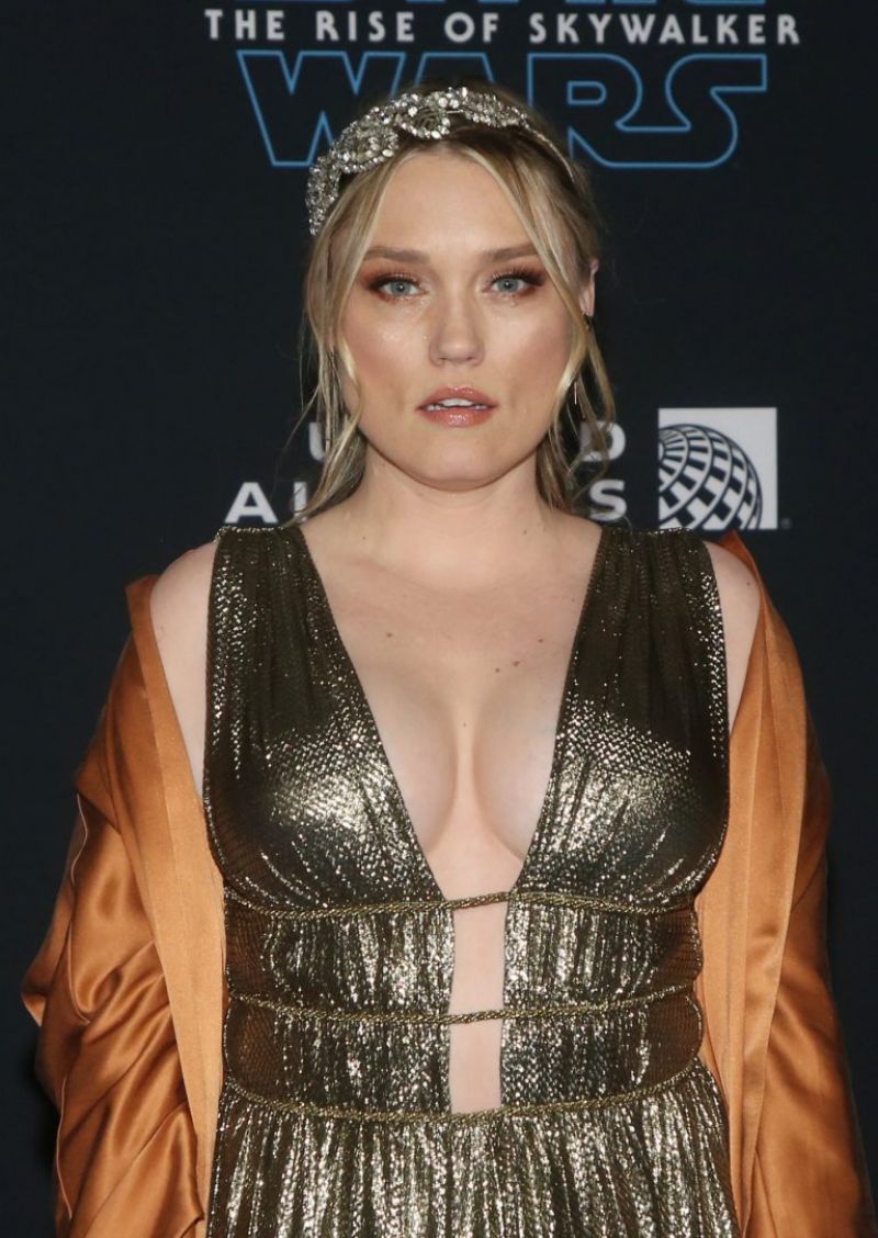 Clare Grant braless boobs showing nice cleavage in a low cut sexy dress photographed at the premiere of "Star Wars: The Rise Of Skywalker".