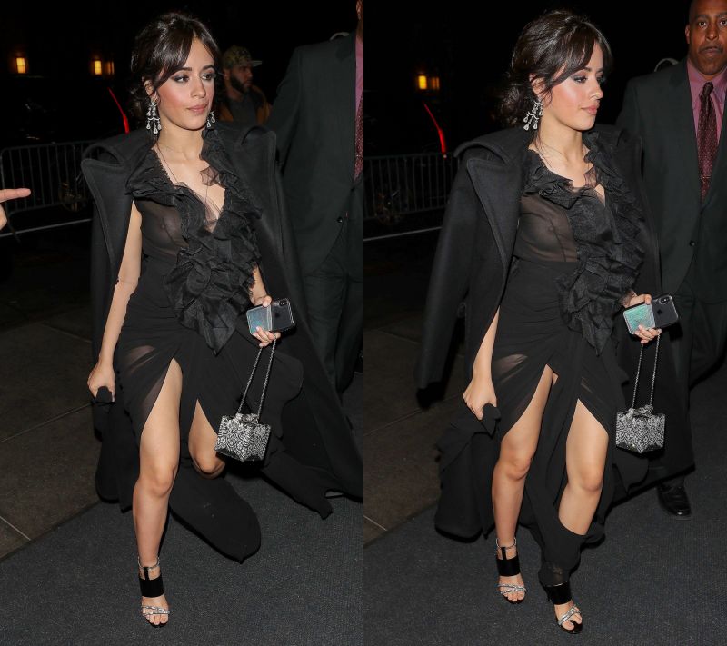 Camila Cabello braless boobs in a see through sexy dress very clearly showing her tits.