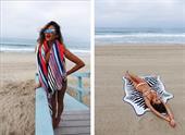 Shay Mitchell at the beach with a surfboard