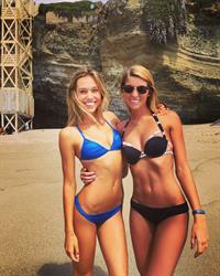 Alessandra Ambrosio sexy ass and cleavage in a thong bikini seen at the beach by paparazzi.